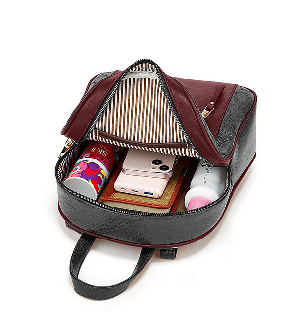 Черна бордо дамска раница с малка чанта и несесер