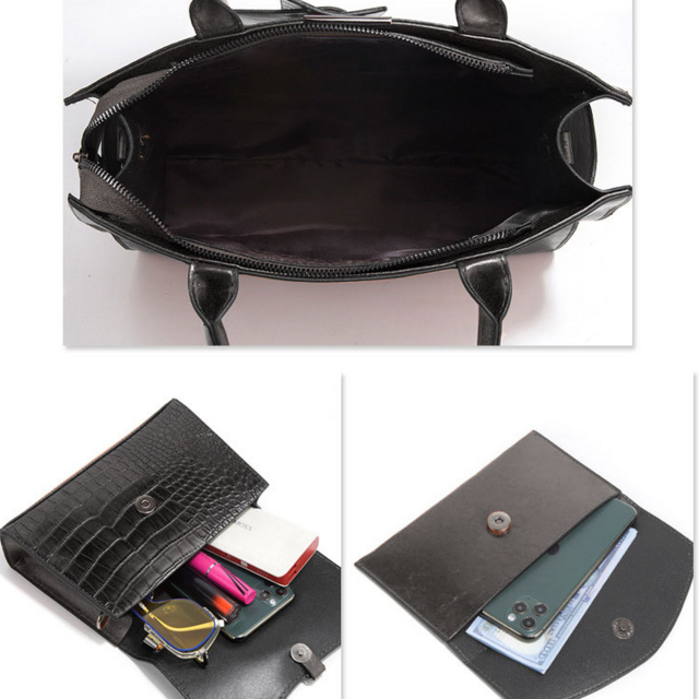 Черна кожена дамска чанта с малка чанта