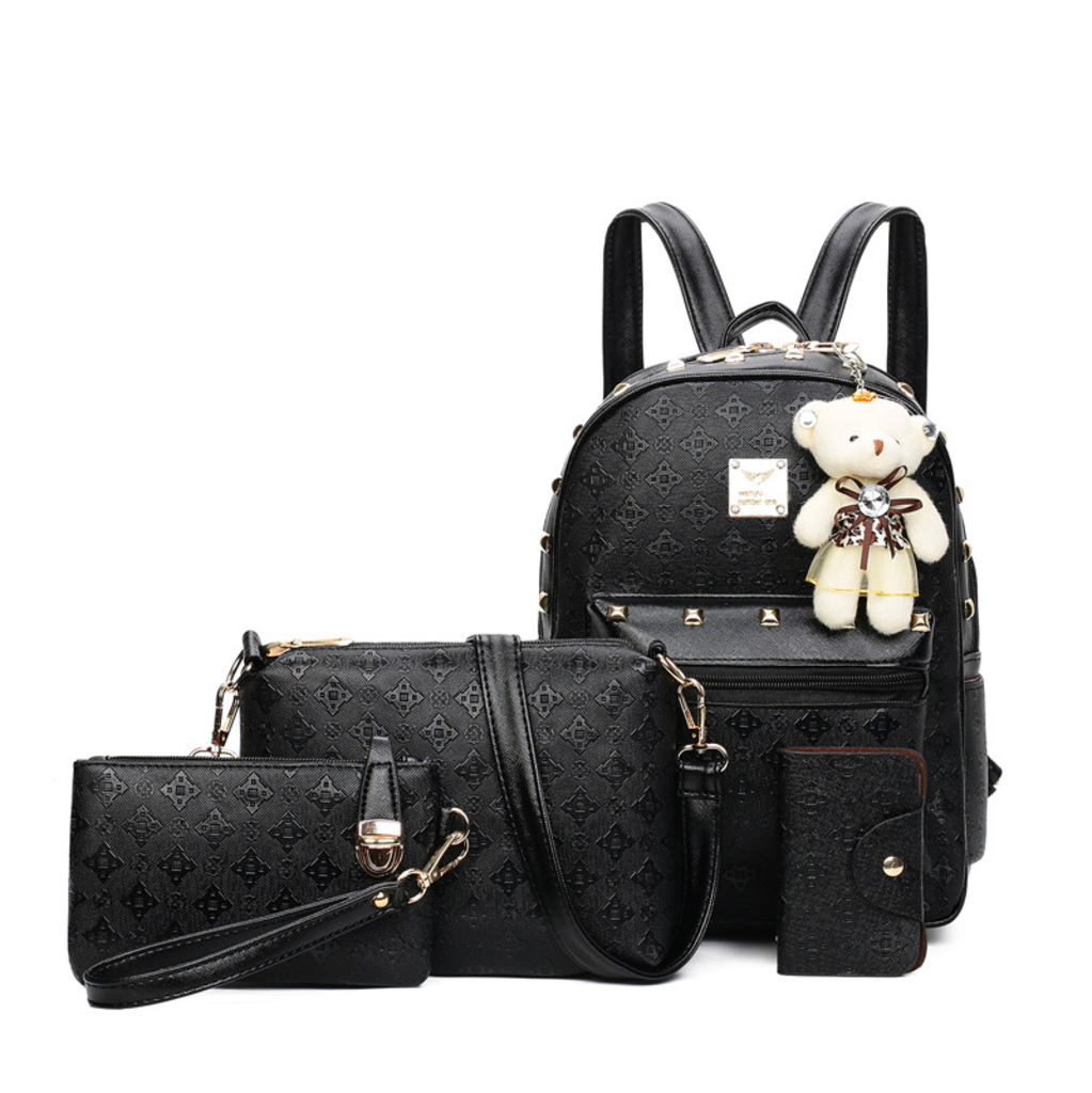 Черна кожена дамска раница с малка чанта през рамо
