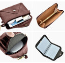 Кафява кожена дамска чанта с две малки чанти и визитник