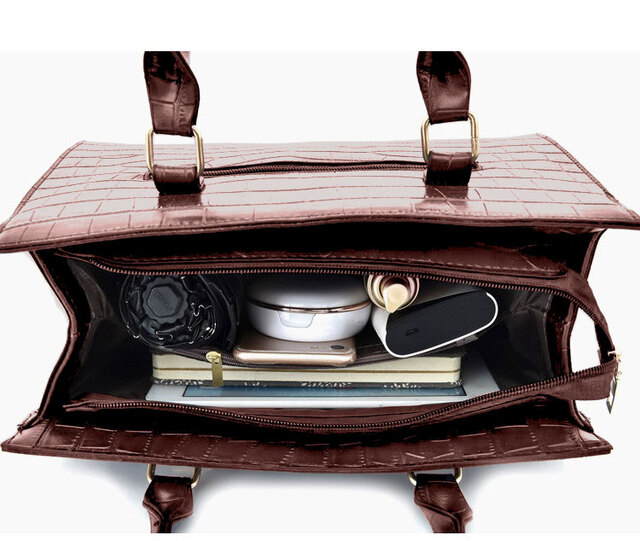Изработена от висококачествена Еко кожа, чантата разполага с удобна дълга дръжка за лесно носене през рамо и два джоба, а включеното портмоне добавя практичност и завършеност на визията. Комплекта включва също и елегантна малка кожена дамска чанта. Идеалният аксесоар за всяка модерна жена, който ще подчертае вашия уникален стил и вкус.