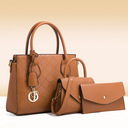 Кафява кожена дамска чанта с две малки чанти