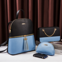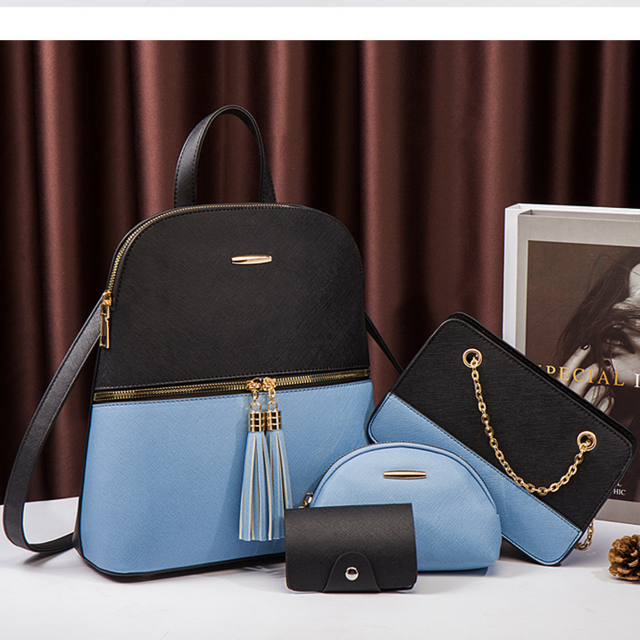Синьо черна кожена дамска раница с малка чанта и несесер